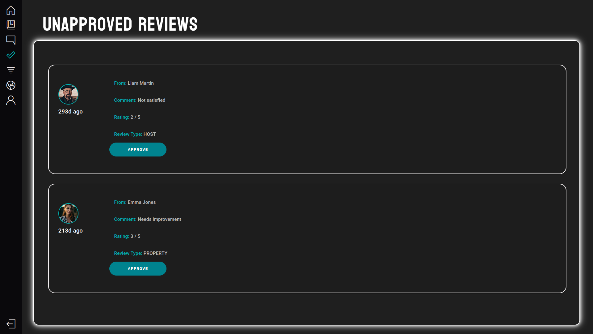 - Reviews are approved by an admin before they are shown